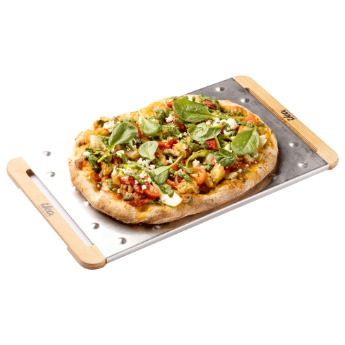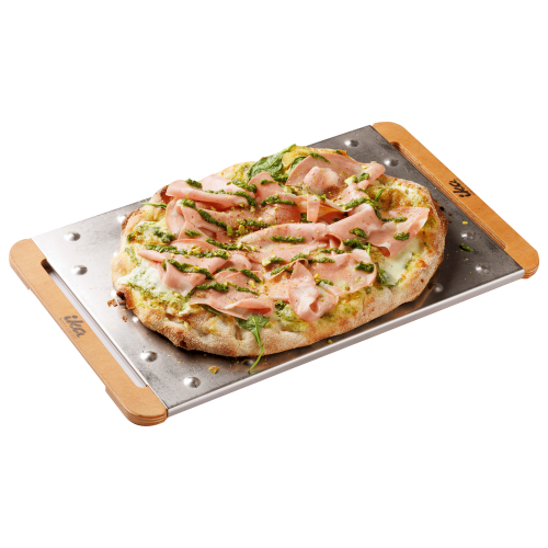 Tomato sauce, mussel meat, calamari, tiger prawns, cherry tomatoes, cheese, arugula, Parmesan.